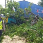 Pesantenanpati.com – Pohon akasia tumbang karena tersangkut kontainer dan menimpa kendaraan besar tersebut. Peristiwa ini terjadi sekitar pukul 11.00 WIB di