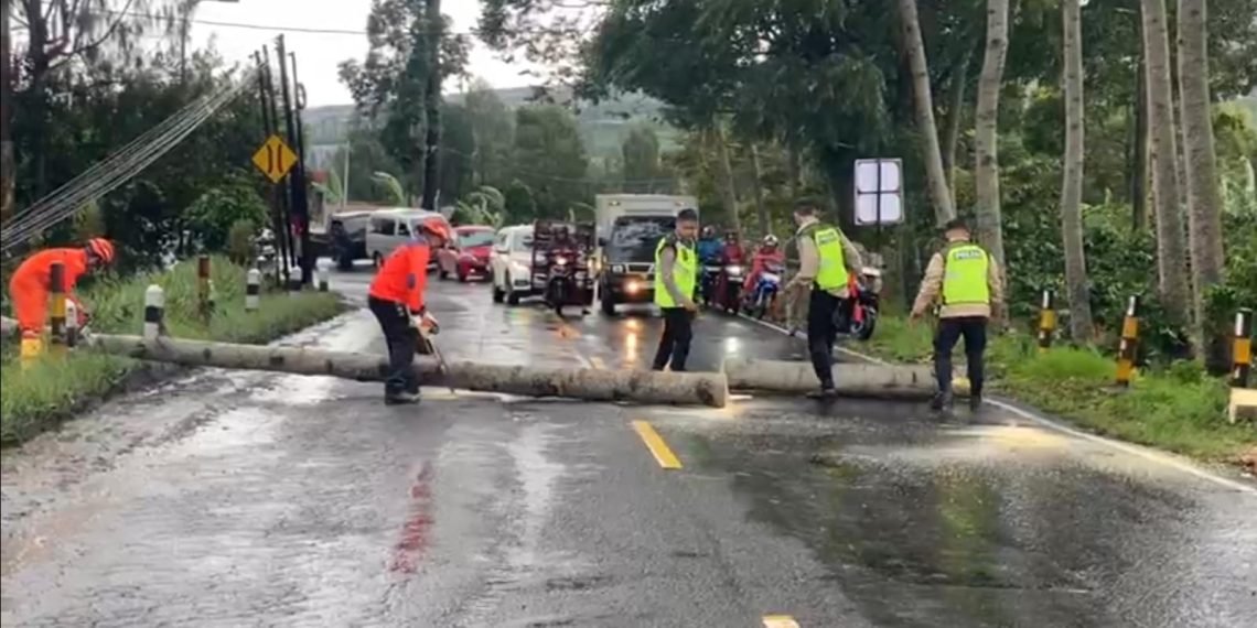 “Kami langsung melakukan pengaturan arus lalu lintas dan bersama tim gabungan melakukan pemotongan batang pohon yang menutupi badan jalan agar akses masyarakat tidak terhambat terlalu lama,” ujar IPTU Ibnu Anwar.